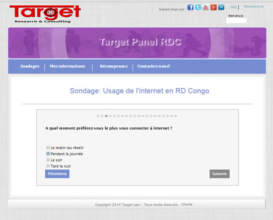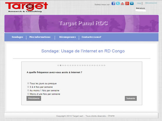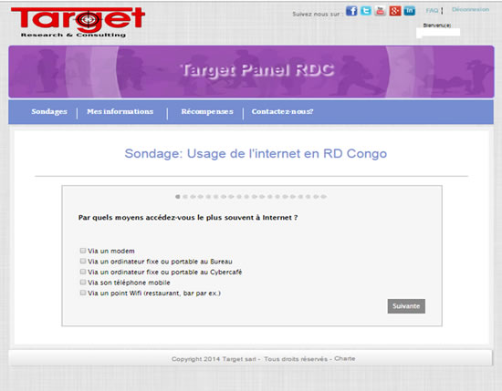 Le cabinet d’études de marché Target SARL vient d’apporter une innovation dans le secteur de la recherche marketing en République démocratique du Congo. Il vient de réaliser les toutes premières enquêtes sur questionnaire en ligne via son panel mis en place début 2015.