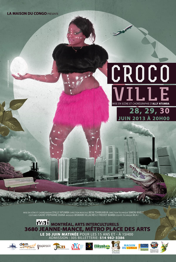 Après le triomphe incontestable de CongoDrama en 2009-2010 (tragédie mettant en scène les drames et histoires des membres de la communauté congolaise), Ally Ntumba revient en force avec un tout nouveau spectacle. Il faut dire que, depuis lors, le metteur en scène n’a pas chômé! Professeur à temps partiel de théâtre et développement à l’Université Concordia à Montréal, auteur d’une nouvelle pièce Goma, l’enfant prodigue en 2012, le directeur artistique, qui est aussi comédien, a enchaîné les projets. Et les nombreux échos positifs à l’égard de ses œuvres viennent confirmer son hyper activisme. Ainsi, pendant que les critiques favorables vont bon train, Ally Ntumba, lui, ne s’arrête pas de travailler! D’ailleurs, c’est en un mois à peine, qu’il a rédigé Crocoville, son prochain spectacle dont la Première est prévue pour le 28 juin 2013.