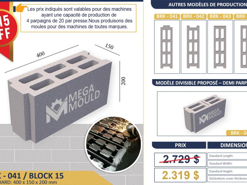 LES PRIX DE NOS MOULES POUR LES MACHINES DE DIFFÉRENTES CAPACITÉS