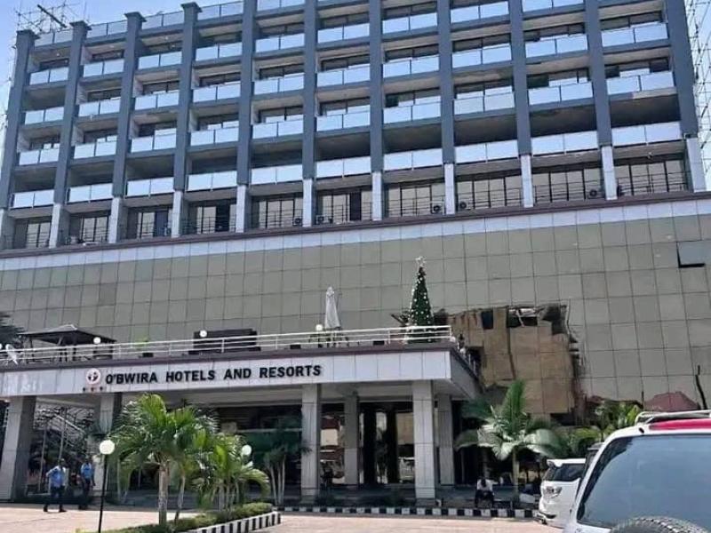 L'hôtel a 12 niveaux dont 90 chambres 2 restaurants, une salle de fête et une terrasse au dessus avec une vue du fleuve Congo.