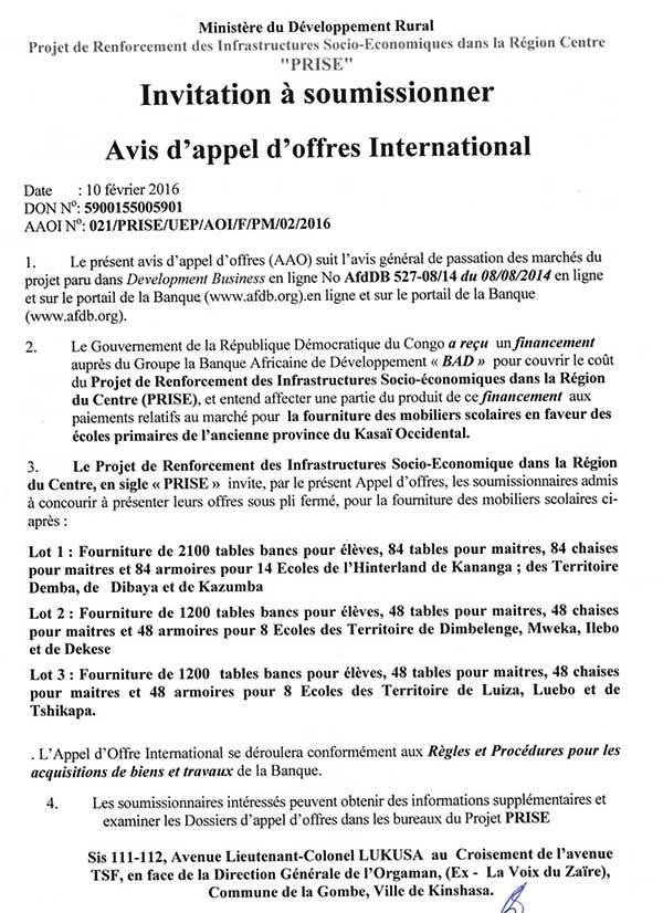 APPEL D'OFFRES