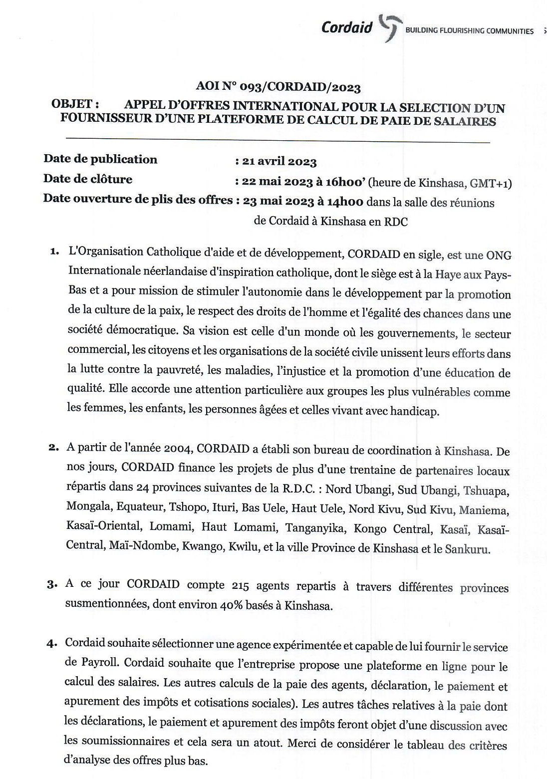 APPEL D'OFFRES