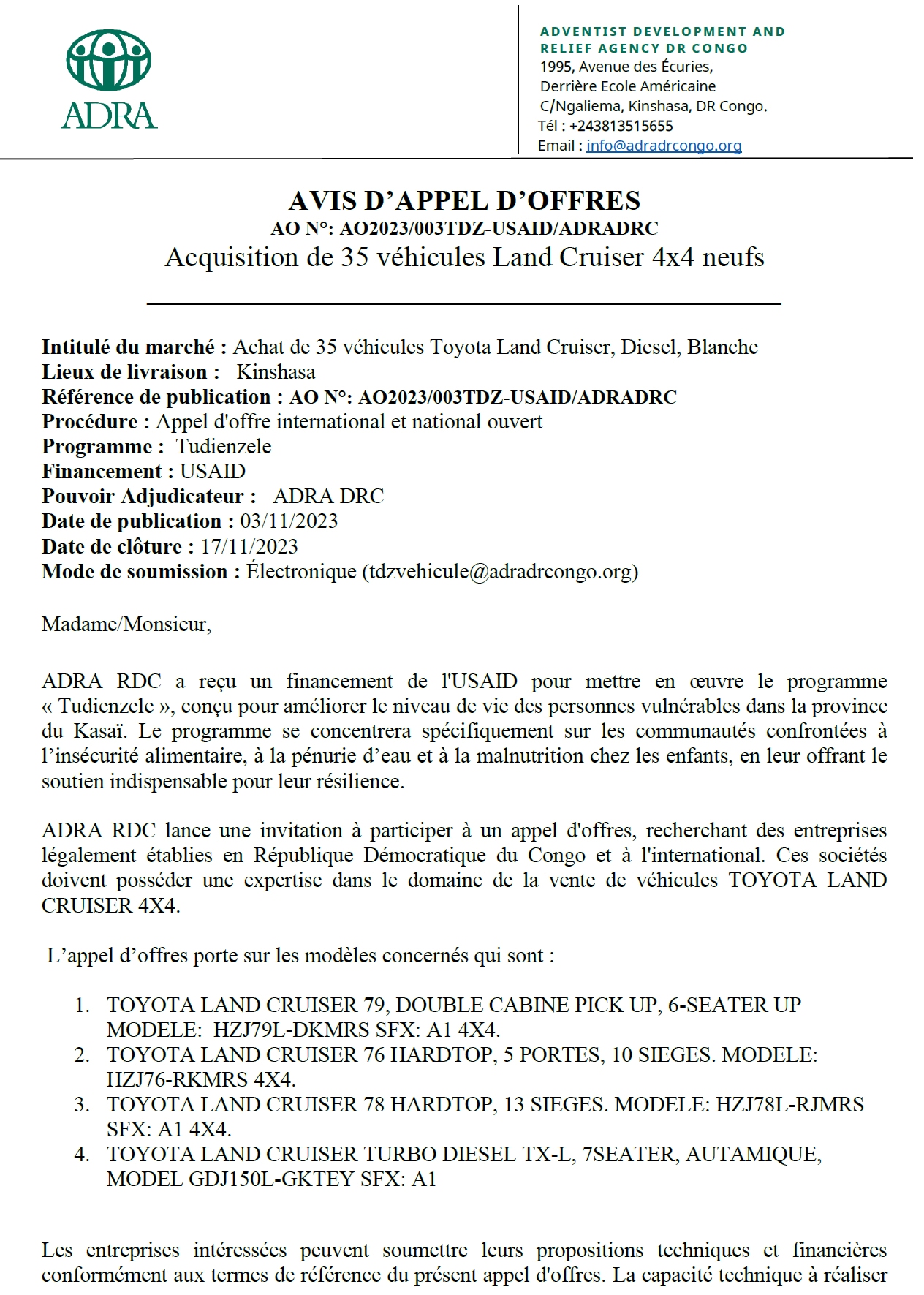 ADRA DRC