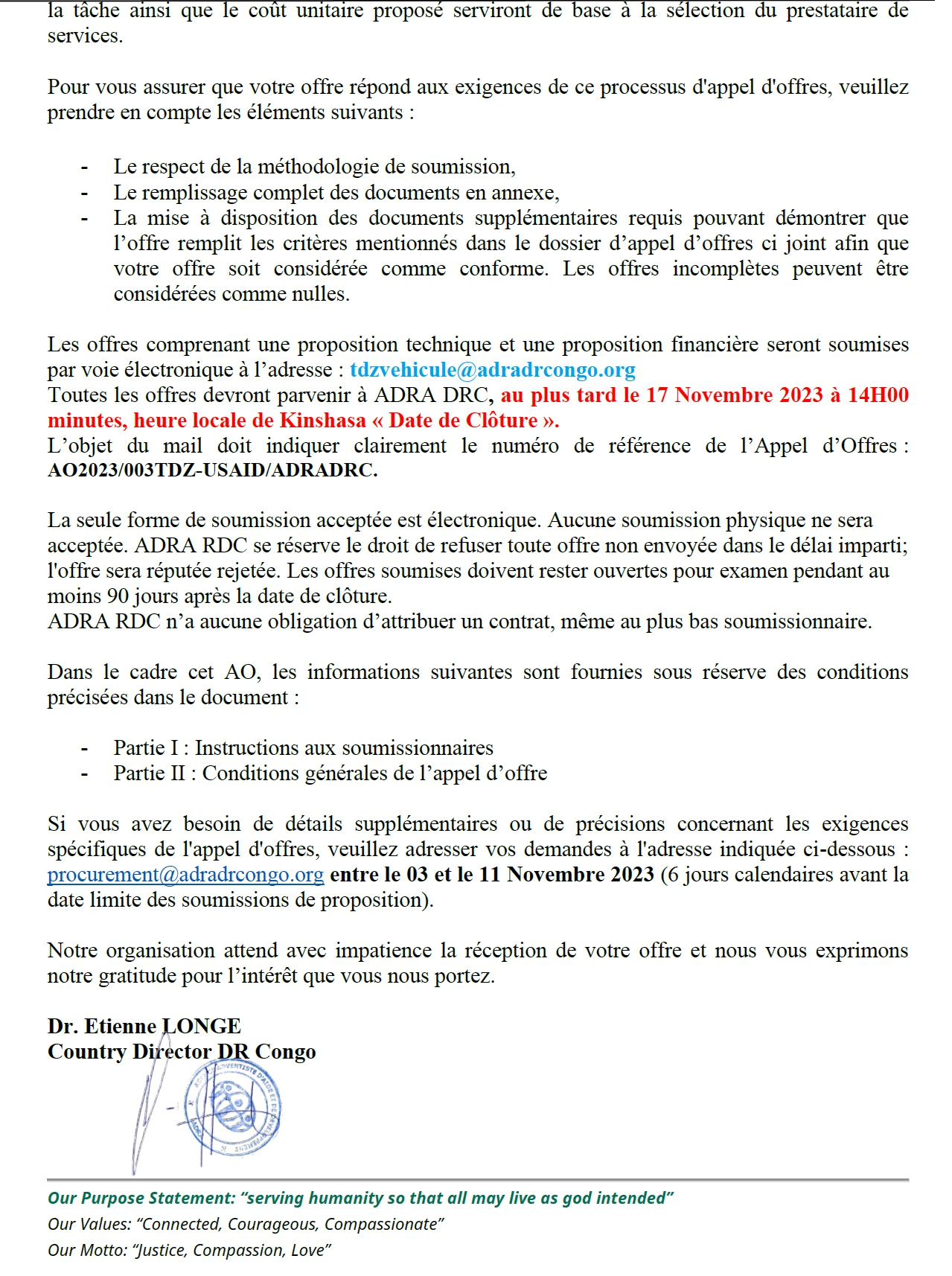APPEL D'OFFRES