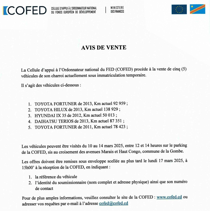 Le DG du FPI annonce les bonnes nouvelles pour le Kasaï-Central