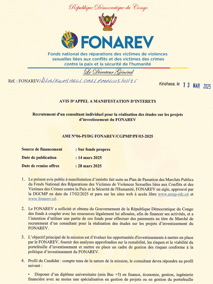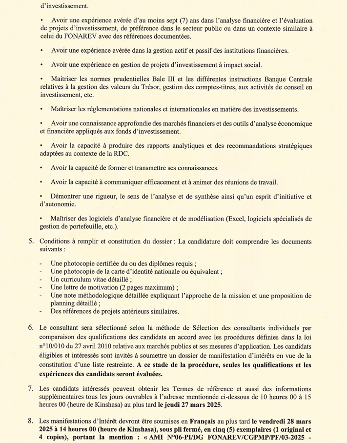 Consultant individuel pour la réalisation des études sur les projets d'investissement