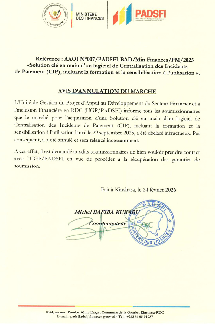 Le DG du FPI annonce les bonnes nouvelles pour le Kasaï-Central