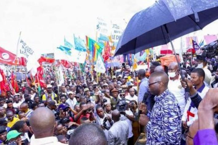 «Nous, nous disons nous allons accompagner le président Félix Tshisekedi aux élections avec les actions concrètes. Nous voulons que le président Félix Tshisekedi gagne les élections de 2023 à partir de notre travail que nous allons faire ici chez nous au Haut-Katanga. L’Union sacrée c’est la vision du président de la République. Tout celui qui est du côté de cette vision est le bienvenu à l’Union sacrée. Et l’Union sacrée, on ne refuse personne. Elle accepte toute personne qui croit en elle et nous disons qu’avec le Président de la République, nous allons changer les conditions [Ndlr: de vie] des congolais », a t’il déclaré devant une foule