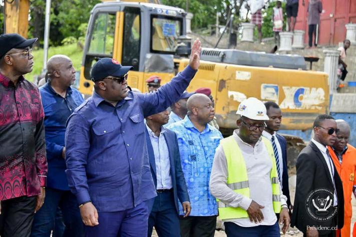 Le Chef de l’État, Félix-Antoine Tshisekedi, a effectué ce samedi 17 décembre 2022 une visite d’inspection des travaux de réhabilitation de la Route Nationale n°1, sur le site sinistré de Matadi Kibala, après les pluies diluviennes de la nuit du lundi 12 au mardi 13 décembre 2022.