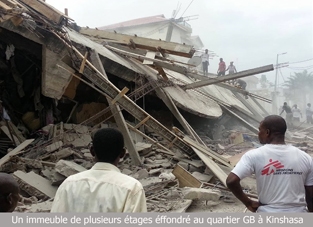 L’immeuble Clodys Center s’est effondré ce lundi 14 octobre dans la matinée au quartier GB, dans la commune de Ngaliema, à Kinshasa, faisant plusieurs blessés. Ce bâtiment de quatre étages situé sur l’avenue Basoko, en face de Médecins sans frontières Belgique, abritait des habitations ainsi qu’une boutique d’habillement. Cet effondrement serait dû au non respect des normes de construction.