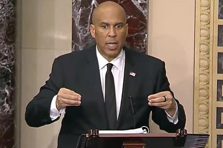 Au début de son intervention lundi soir, Cory Booker s'était livré à une attaque en règle de l'administration Trump.