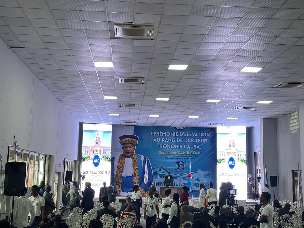 Le président de la Cour constitutionnelle et du Conseil supérieur de la magistrature de la République démocratique du Congo, Dieudonné Kamuleta, a été élevé, ce lundi 12 mai 2025, au rang de docteur honoris causa, lors d’une cérémonie organisée à l’Université technologique Bel campus, à Limete, dans le centre de Kinshasa.