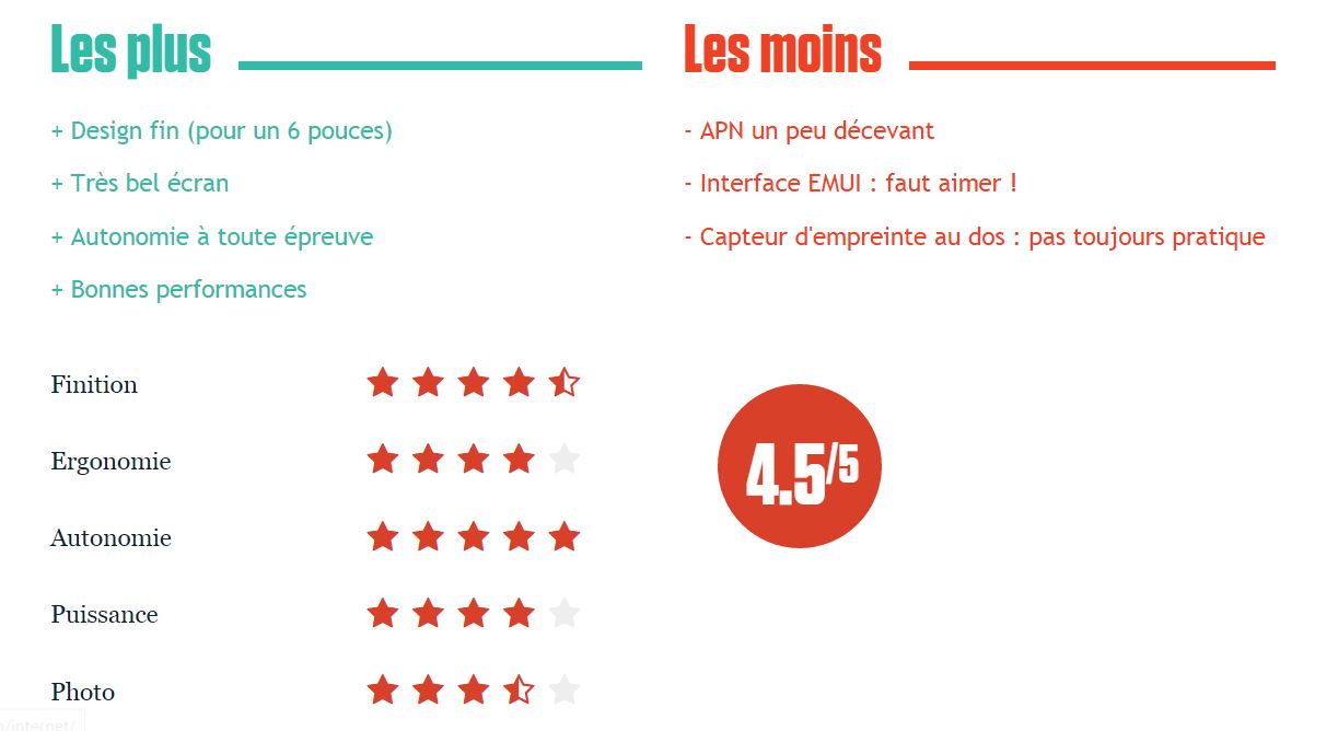 Ces reproches sont finalement assez mineurs face aux qualités du Mate 8 qui en font un des meilleurs smartphones « grand format » du moment, malgré un prix démarrant tout de même à 599 euros. Les utilisateurs soucieux du suivi des mises à jour et d'une expérience « pure Google » lui préféreront en revanche le Nexus 6P, également signé Huawei, un peu plus cher en temps normal, mais bénéficiant, jusqu'au 12 février 2016, d'une promotion qui le fait passer à 549 euros pour la même capacité de 32 Go, certes, sans slot microSD.