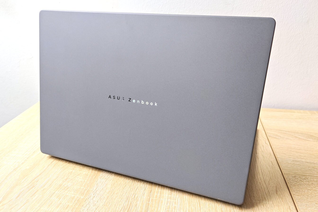 Arborant une esthétique à la fois élégante et minimaliste, presque trop sobre, le Zenbook A14 met clairement l’accent sur la portabilité avec ses dimensions de 311 x 213 x 15,9 mm. Véritable poids plume de sa catégorie, il parvient à passer sous la barre du kilogramme (0,98 kg exactement, alimentation de 230 grammes non comprise) grâce à son châssis en ceraluminum. Cet aluminium retravaillé pour se rapprocher des propriétés de la céramique, que l’on trouvait déjà sur le capot du Zenbook S16, offre ici une texture douce et agréable au toucher. Selon Asus, il s’avère également durable et plus résistant aux rayures et aux traces de doigts que l’aluminium anodisé traditionnel.
