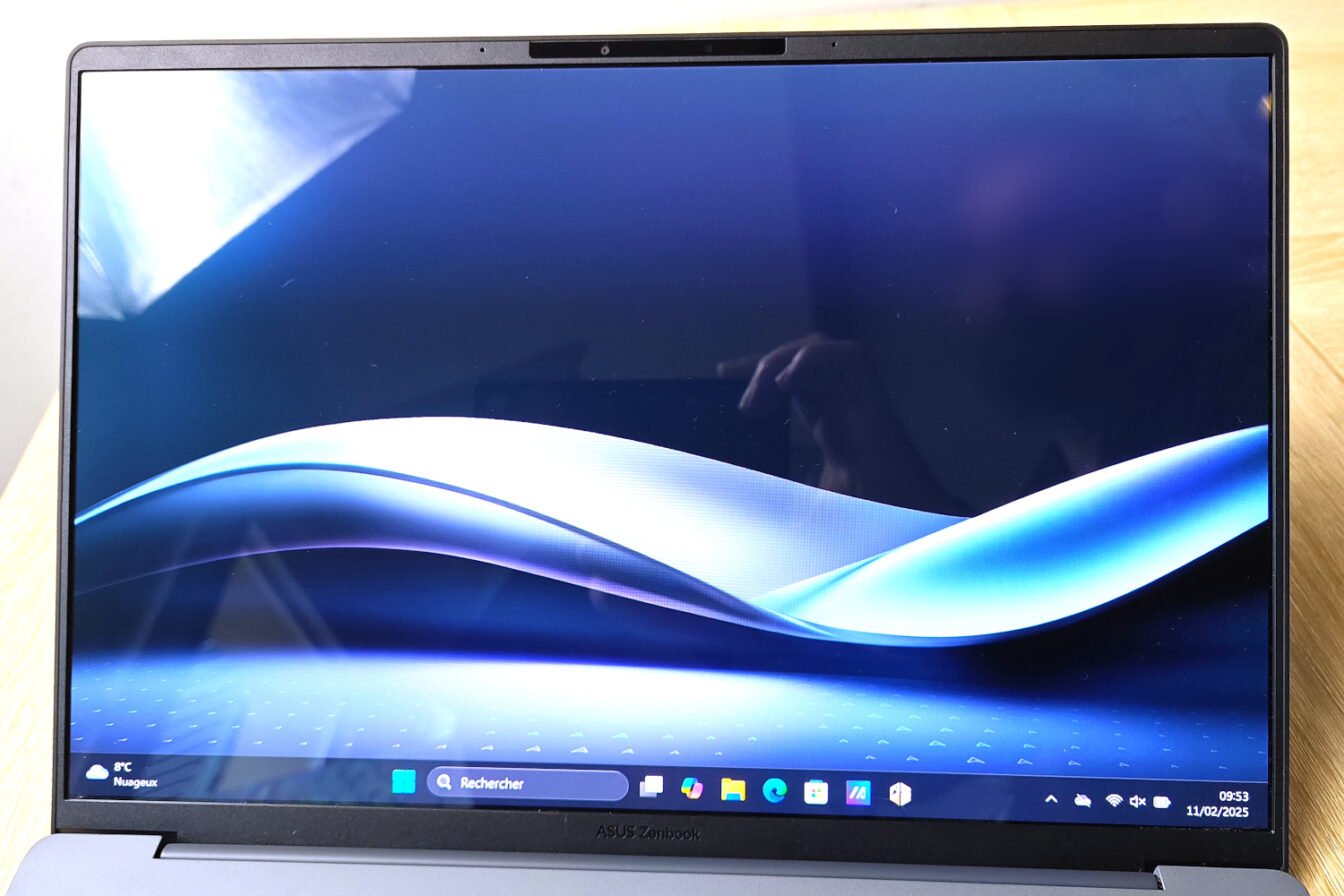 Côté connectivité, l’Asus Zenbook A14 affiche des caractéristiques classiques avec la prise en charge du Wi-Fi 6E et du Bluetooth 5.3. Pas de port Ethernet donc, une décision logique du constructeur pour conserver une épaisseur minimum. L’absence de Wi-Fi 7 est en revanche un peu regrettable.
