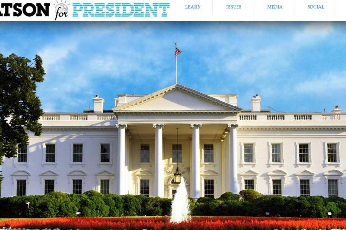 Le site a tout du site d’un vrai candidat à la présidentielle. Watson, c’est en fait le programme informatique d’intelligence artificielle, conçu par IBM et connu pour avoir gagné, face à des adversaires humains, le jeu télévisé américain "Jeopardy!" en 2011 (le principe: à partir de réponses, les candidats doivent trouver la question correspondante). Il a ensuite continué à se développer, notamment dans le domaine médical puisqu’il est capable de diagnostiquer des cancers et d’informer les médecins sur le meilleur traitement à appliquer aux patients.