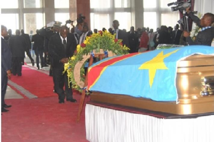 Le Président Joseph Kabila devant la dépouille mortelle de feu le ministre de la Culture et des arts, Baudouin Banza Mukalay Sungu