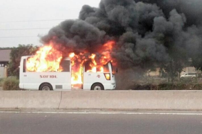 Kinshasa : la foule en colère a brûlé un bus suite au meurtre d'un membre de l'UDPS tué par 1 militaire. (© UDPS, Twitter)