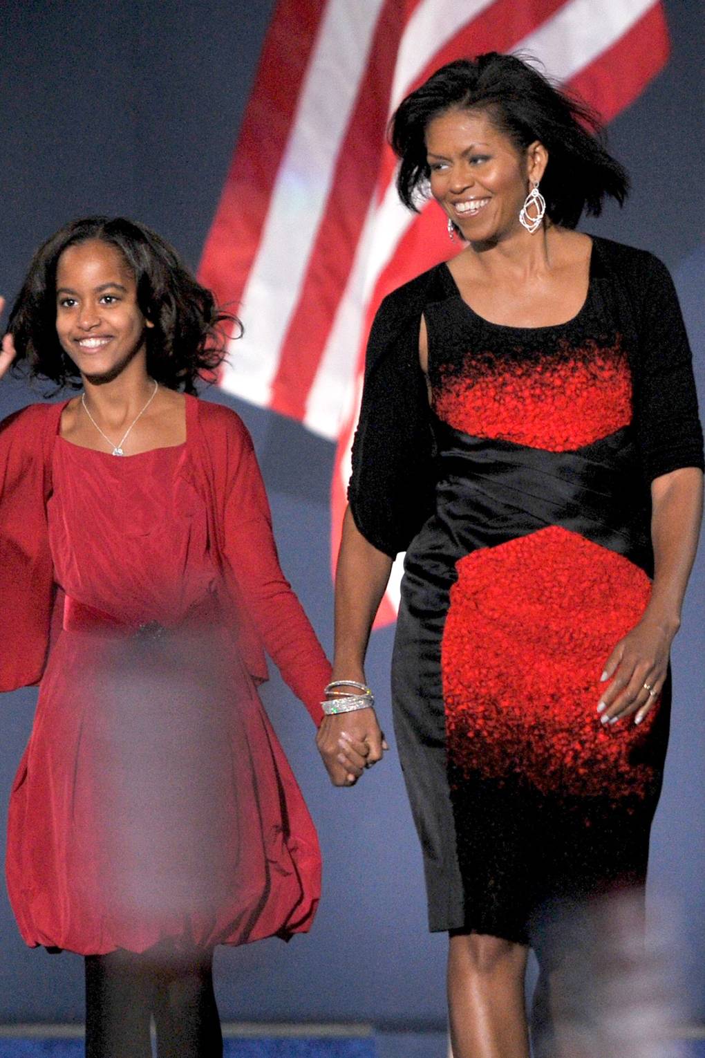 La mère de Sasha et de Malia portant une robe signée Narciso Rodriguez lors de l'investiture du 4 novembre 2008