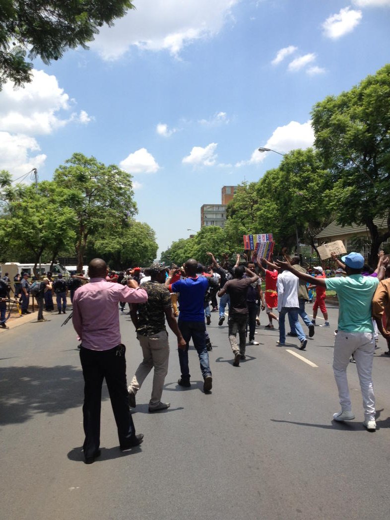 La manifestation a failli dégénéré mais la police a riposté en dispersant la foule (@carienduplessis, Twitter)
