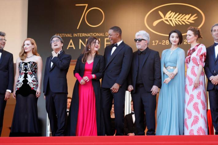 Les membres du jury Gabriel Yared, Jessica Chastain, Park Chan-wook, Agnès Jaoui, Will Smith, le président du jury Pedro Almodovar, Fan Bingbing, Maren Ade et Paolo Sorrentino se sont joyeusement prêtés à la séance de pose. C'est également main dans la main que l'équipe du film "Les Fantômes d'Ismaël", projetté hors-compétition, a foulé le tapis-rouge de la Croisette: Marion Cotillard, Louis Garrel, Charlotte Gainsbourg, Hippolyte Girardot, le réalisateur Arnaud Desplechin, Alba Rohrwacher et Mathieu Amalric. Uma Thurman, présidente d'Un Certain Regard, et Sandrine Kiberlain, présidente de la Caméra d'Or, étaient rayonnantes. Sur scène, la maîtresse de cérémonie Monica Bellucci a échangé un baiser avec Alex Lutz,avant de laisser la place au duo Benjamin Biolay et Louane.