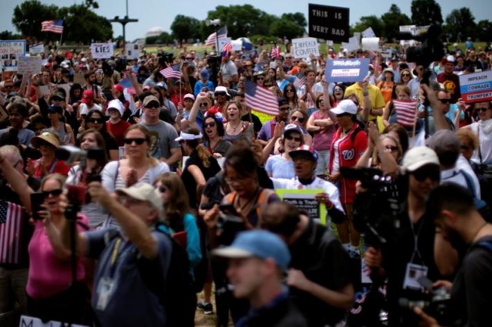 Cette manifestation avait été nommée « la marche pour la vérité ». Elle a rassemblé des milliers de personnes à New York, Washington, Los Angeles, Seattle et nombre d'autres villes. Les manifestants ne protestaient pas seulement contre le manque de transparence sur l'affaire russe, mais contre d'autres aspects de la politique de Donald Trump comme le retrait de l'accord de Paris.