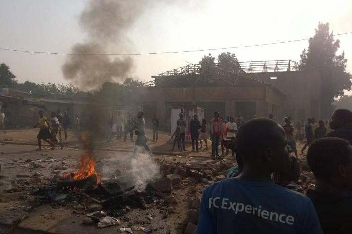 Dans le soucis de chercher à rétablir l'ordre dans ce coin et trouver un moyen pour évacuer les corps des victimes, la police est en train de tirer en l'air, utilisant de gaz lacrymogènes pour disperser la population très en colère.