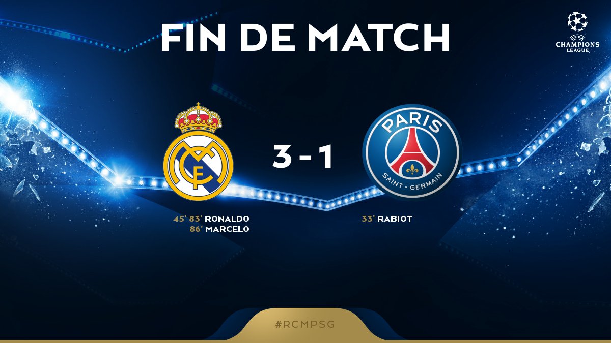 Au petit jeu des changements, c'est le technicien français qui sort gagnant. Le PSG se retrouvera peu à peu liquéfié, sous l'effet des entrées madrilènes. Ce trio va dynamiter la défense du PSG dans les dix dernières minutes. Areola maîtrise mal un centre d’Asensio, monté au jeu, et Ronaldo passe par là et fait 2-1 ... du genou (83e). Trois minutes plus tard, Asensio sert Marcelo dans la surface. Le Brésilien décoche une frappe sèche et donne de l'air au Real en vue du match retour (3-1, 86e).