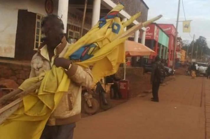 La population de Beni enlève les drapeaux du parti présidentiel, PPRD, qui flottent sur divers bâtiments de la ville