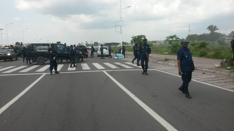 Un cercueil couvert du drapeau national de la RDC abandonné à même le pavé et entouré par les éléments de la police fortement armés qui sont intervenus à coup de gaz lacrymogène et des tirs en l’air.