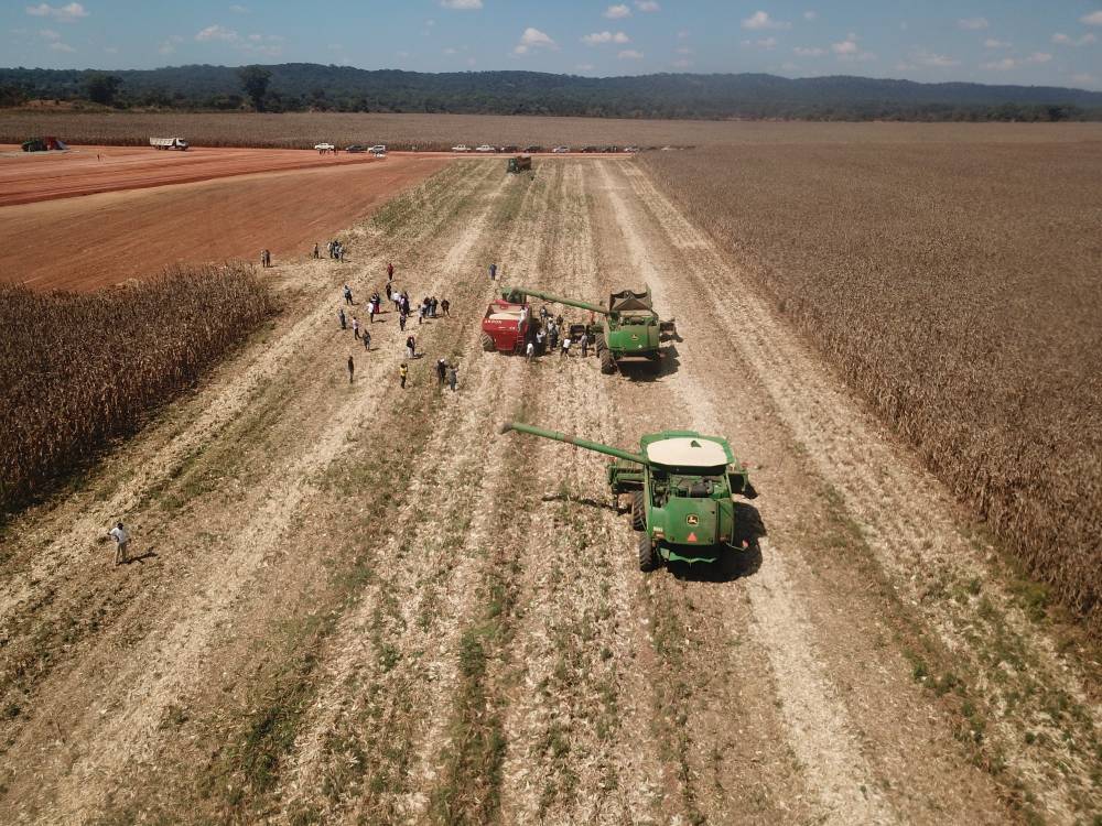 Prenant les commandes de la moissonneuse batteuse, Marie-Olive Lembe Kabila a lancé la récolte, puis participé, en compagnie des femmes travaillant sur cet immense champ, au glanage de maïs qui ont échappé à l'automobile spécialisée à cette tâche. Une motivation de plus pour ces braves dames, amplifiant du coup l’ambiance de cette labeur.