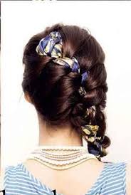 Prenez un long foulard, même une écharpe légère de la couleur de votre choix. Enveloppez votre tête puis ramenez les deux extrémités de façon à couvrir vos oreilles. Avec ses deux brins de foulard, tournez-les jusqu'au bout puis ramenez-les vers votre front. Enroulez le tout pour créer une sorte de rosace.