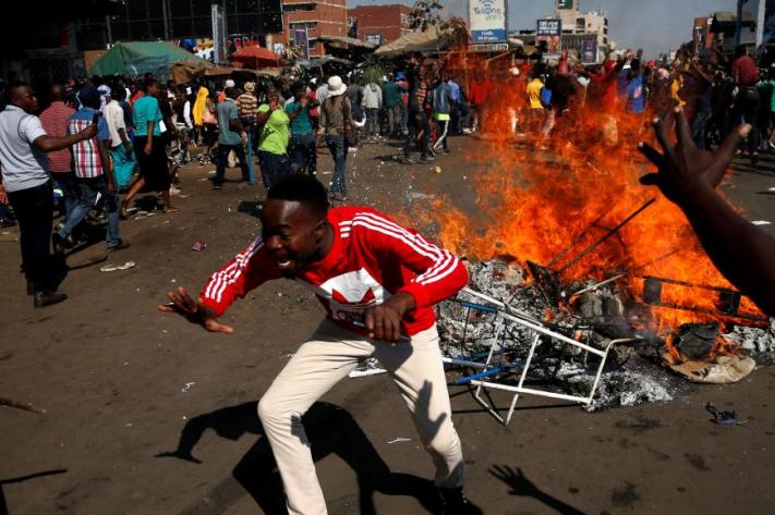 Heurts à Harare, au Zimbabwe, entre partisans de l’opposition et forces de l’ordre, le 1er août 2018. © REUTERS/Siphiwe Sibeko