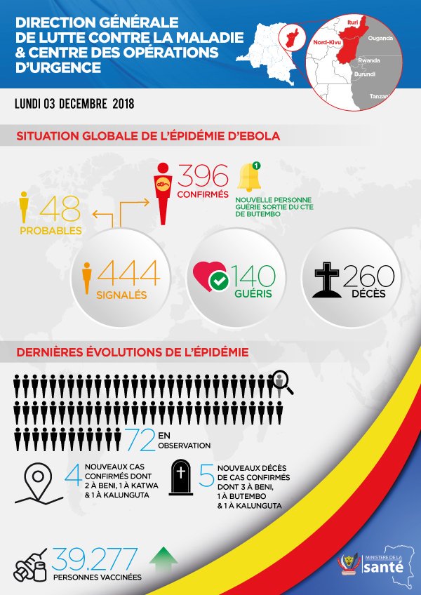 Situation épidémiologique au lundi 03 décembre 2018. (©Twitter/@MinSanteRDC)