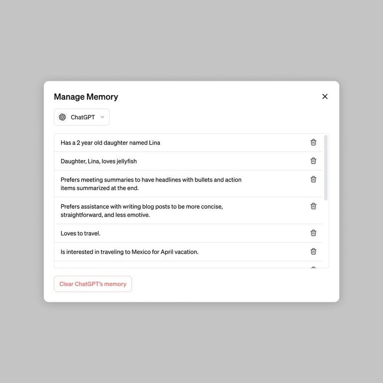 Selon l’entreprise, "vous pouvez lui demander explicitement de se souvenir de quelque chose, lui demander ce dont il se souvient et lui dire d'oublier, que ce soit au cours d'une conversation ou par le biais des paramètres. Vous pouvez également désactiver complètement cette fonctionnalité."