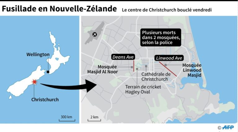 Les forces de l’ordre avaient imposé un bouclage du centre-ville avant de lever les mesures quelques heures plus tard. La police a demandé aux fidèles d’éviter les mosquées “partout en Nouvelle-Zélande”.