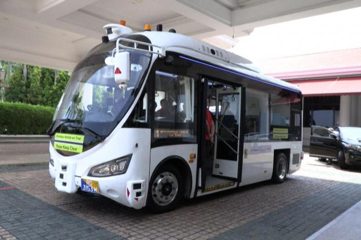 Singapour se lance dans les bus électriques sans chauffeur et "réservable" en ligne. Le premier prendra la route lundi prochain. Cette semaine, les derniers tests avec de vrais passagers sont organisés. Et pour rassurer un peu les usagers, un chauffeur de sécurité, en chair et en os a été prévu.
