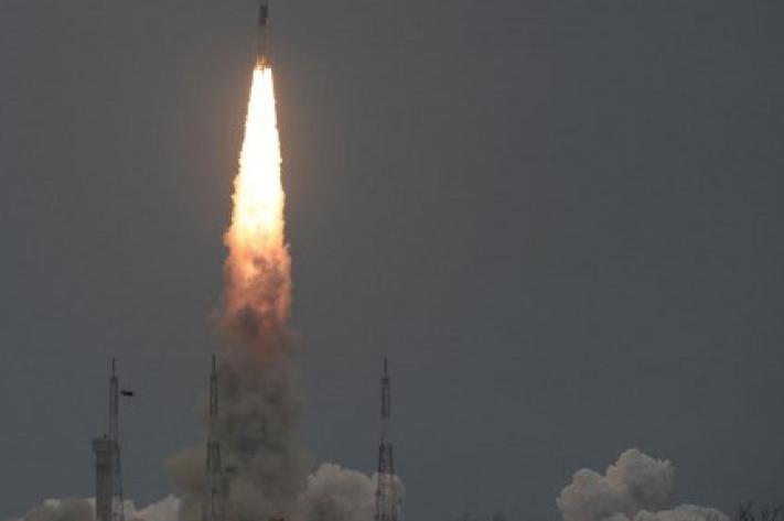 L'Institut indien de recherche spatiale lance le Chandrayaan-2 avec à son bord le satellite Geosynchronous. Le 22 juillet 2019.
