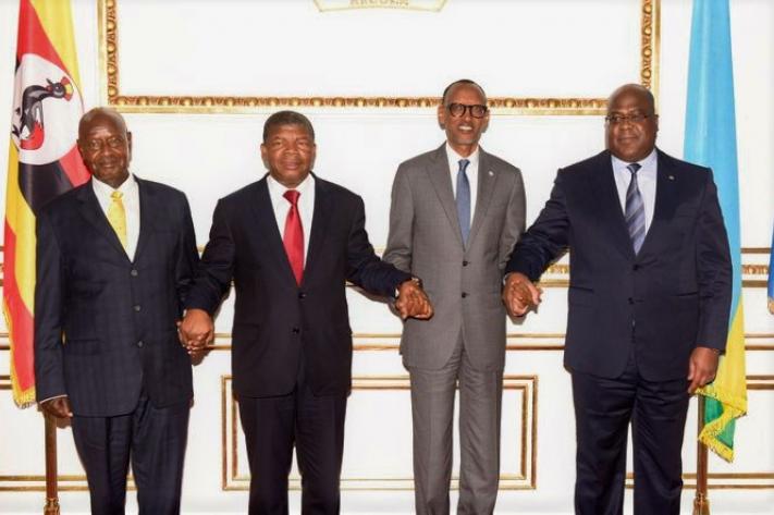 Participent à la rencontre les chefs d'État Félix Tshisekedi, de la RD Congo, Paul Kagame, du Rwanda, Yoweri Museveni, d'Ouganda, et João Lourenço d’Angola.