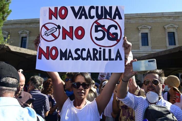 Pilar Martin, une femme au foyer de 58 ans originaire de Saragosse (nord-est) a déclaré être venue manifester à Madrid parce qu'elle pensait que les gouvernements du monde entier exagèrent les chiffres des personnes infectées afin de restreindre les libertés publiques.