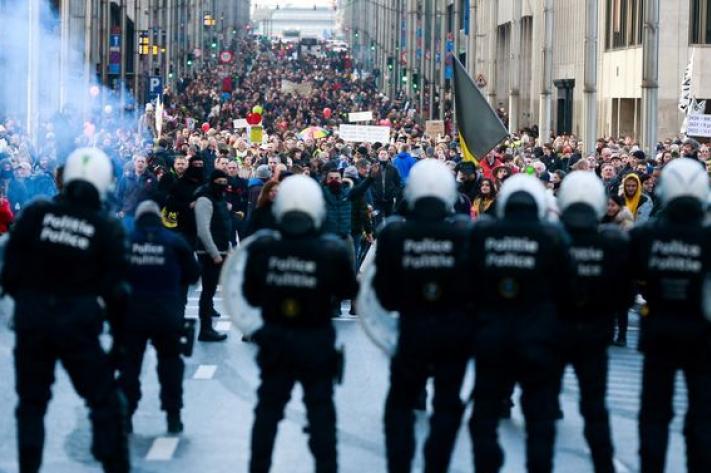 Des heurts ont éclaté dimanche lors d'une manifestation contre les nouvelles mesures anti-Covid à Bruxelles, qui a rassemblé des dizaines de milliers de personnes, après des épisodes similaires aux Pays-Bas et un important rassemblement d'opposants aux restrictions sanitaires en Autriche.