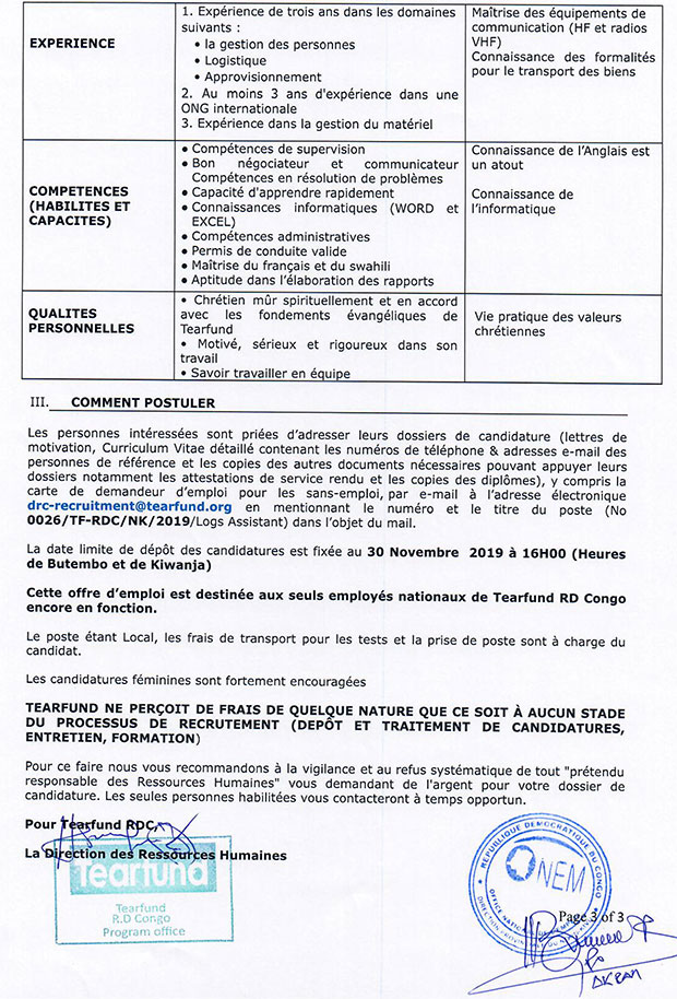La date limite de dépôt des candidatures est fixée au 30 Novembre 2019 à 16heures.