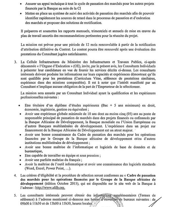 Consultant (individuel) spécialiste en passation des marchés