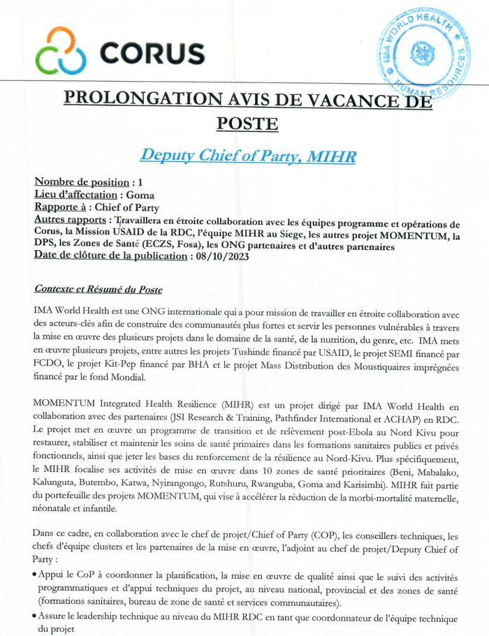 Deputy Chief of Party MIRH - - Corus International Jobs (applicantpro.com)