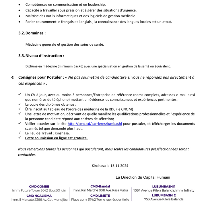 Consignes pour Postuler : « Ne pas soumettre de candidature si vous ne répondez pas directement à ces exigences » :