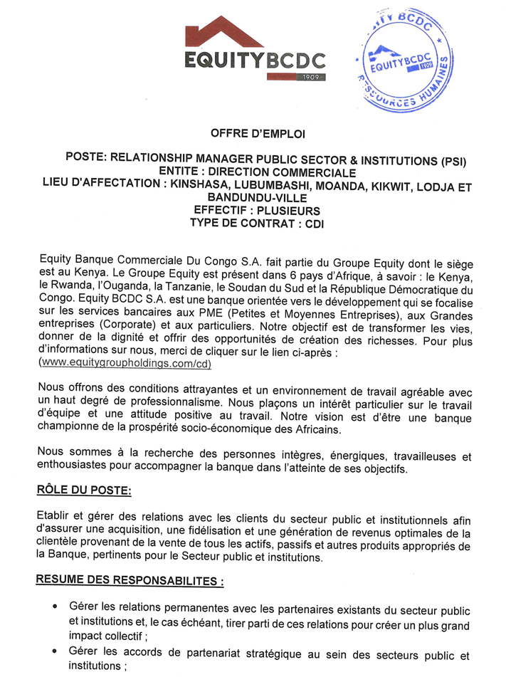 En plus de la soumission de ce formulaire, veuillez noter qu'il vous faudra envoyer votre candidature à l'adresse électronique : recruitment@equitybcdc.cd au plus tard le 19 juin 2025, en vous adressant au Directeur des Ressources Humaines d'Equity BCDC S.A.