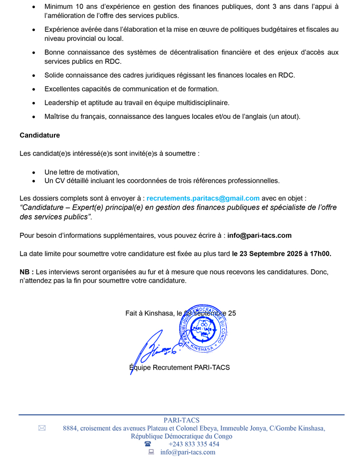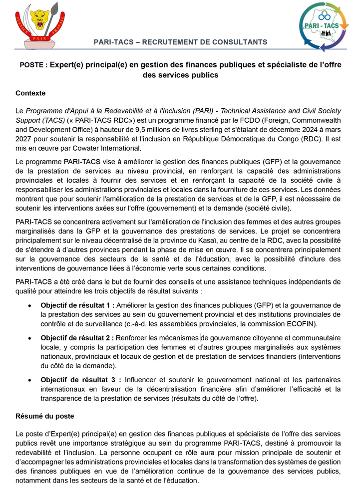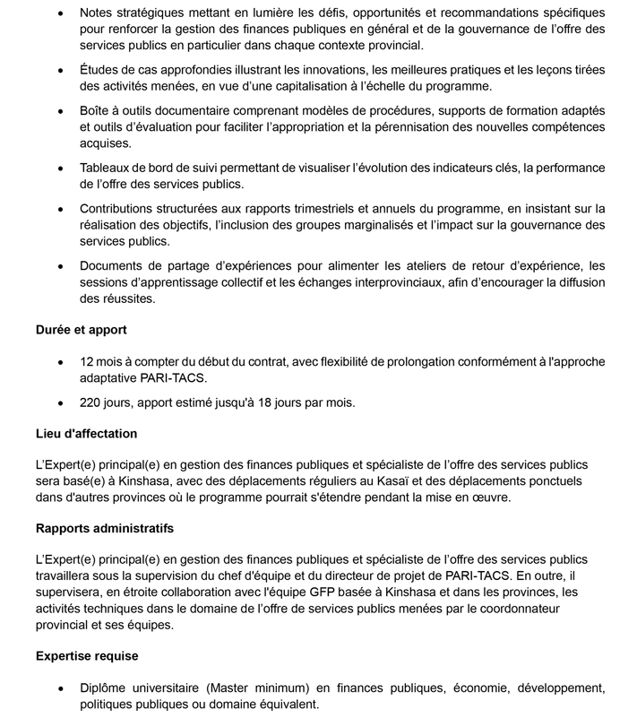 Expert(e) principal(e) en gestion des finances publiques et spécialiste de l'offre des services publics