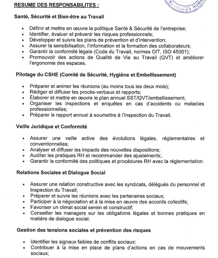 Responsable Santé, Sécurité, Conformité et Relations Sociales