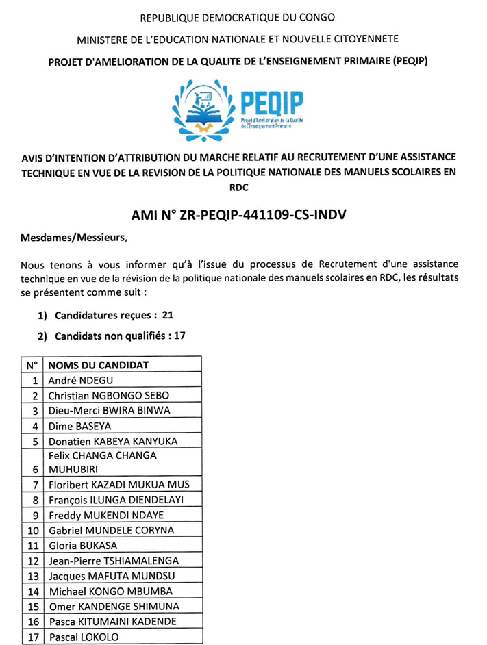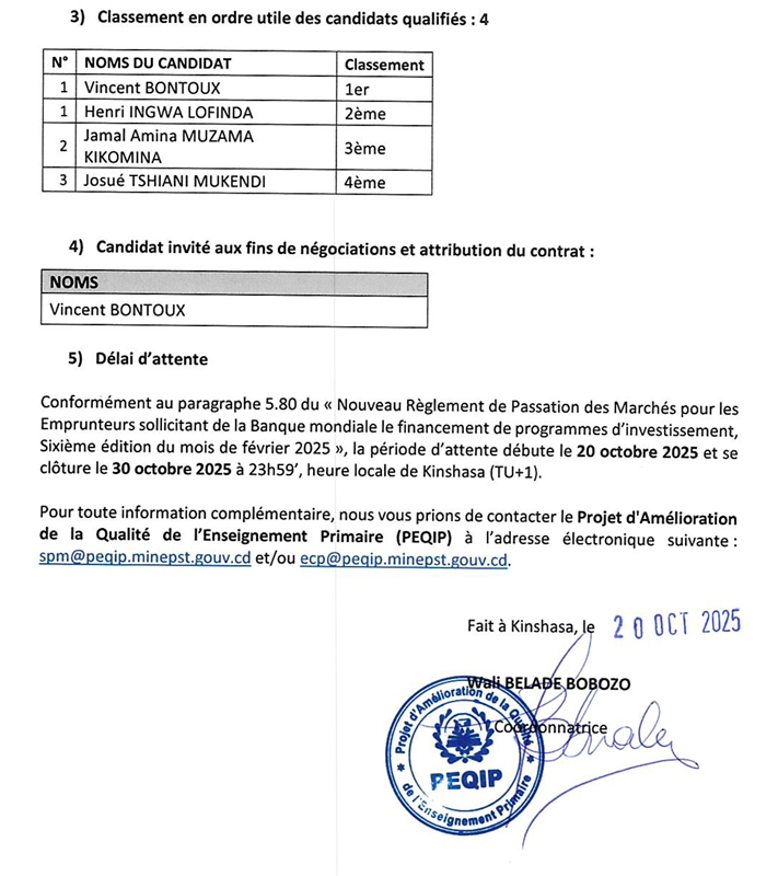 ADDENDUM N°2 au Plan d’Action de Réinstallation (PAR) relatif aux travaux additionnels pour la sécurisation durable du poste SNEL de Kimwenza contre les érosions dans la commune de Mont Ngafula
