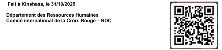 En vue de combler une vacance de poste au sein de son équipe Santé pour sa sous- délégation de Bukavu et son bureau d’Uvira, le CICR souhaite recruter deux Responsables de Programme Santé (Grade B3) pour une durée de 12 mois avec possibilité de renouvellement. La date souhaitée de début pour les candidat(e)s qui seront sélectionnés est le 01 janvier 2026.